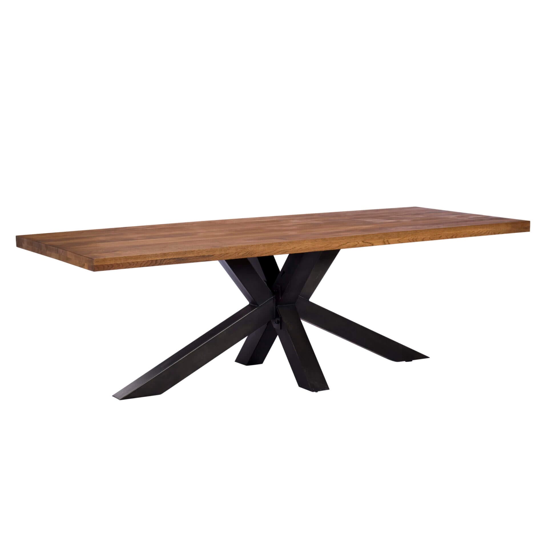 This 2000mm solid oak top table comes with a stunning cross metal pedestal.