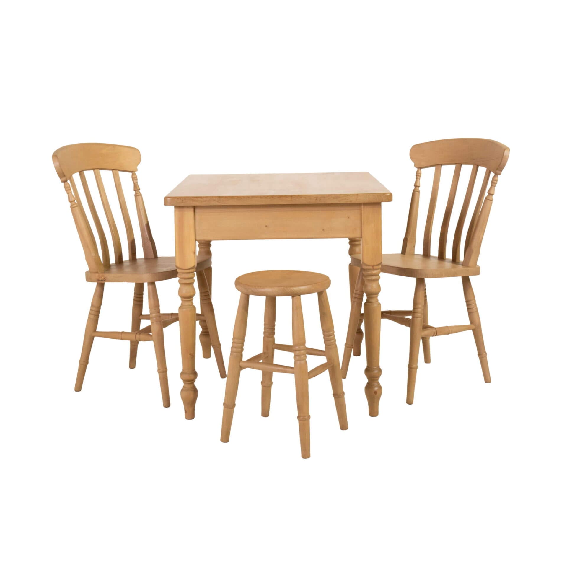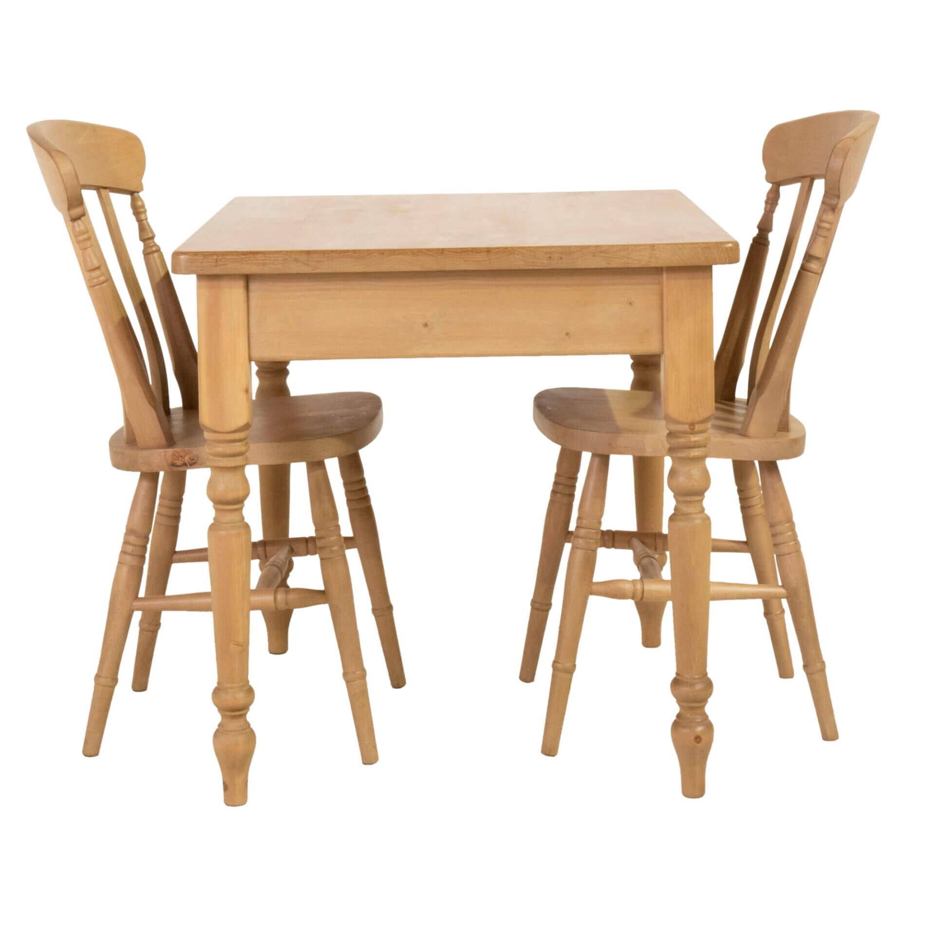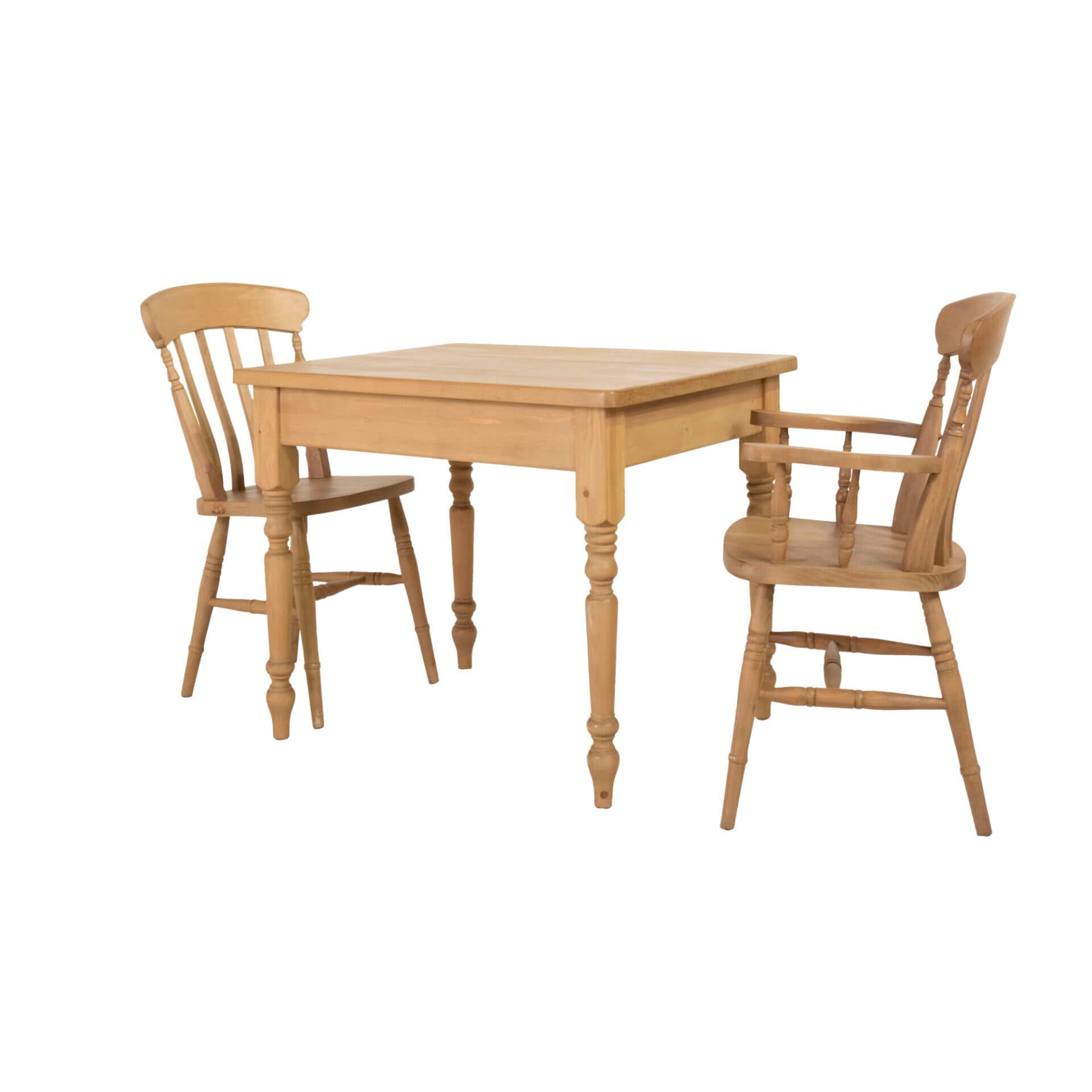 This UK made, pine farmhouse table has a real classic design with its turned legs. The standard size is 915x760mm but it can be made to any size – please ask for a quotation.