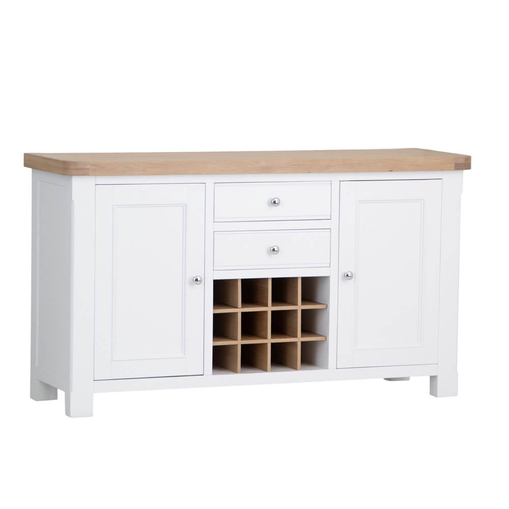 Versatile and useful in any living / kitchen / diner, this large sideboard has 2 cupboards, drawers and an area for up to 12 bottles of your favourite tipple!
