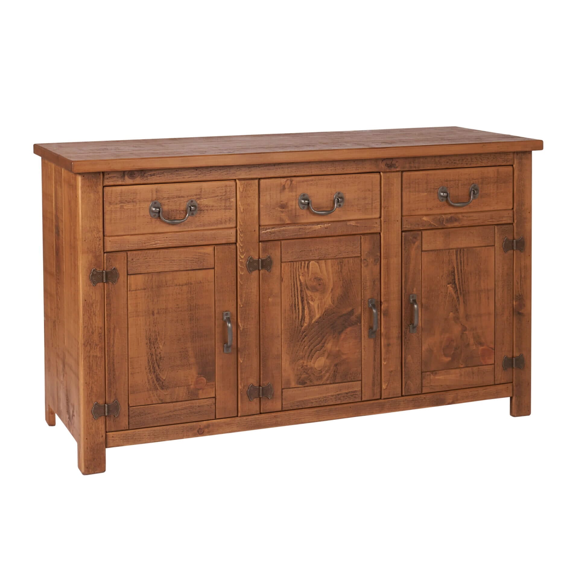 The UK made Rustic Plank 3 door sideboard also has 3 useful drawers.