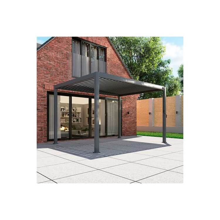 This pergola is the perfect opportunity to extend your outdoor season. Thanks to the tilting double-layer louvres, you can switch between a closed, sheltered space and an open top which allows sunlight to come flooding in. This means that you can use your outdoor area even when the weather is less than perfect. This pergola ultimately allows you to choose between sitting in sunshine or shade and provides a fully waterproof roof should it start to rain at a moments notice – typical of British weather!