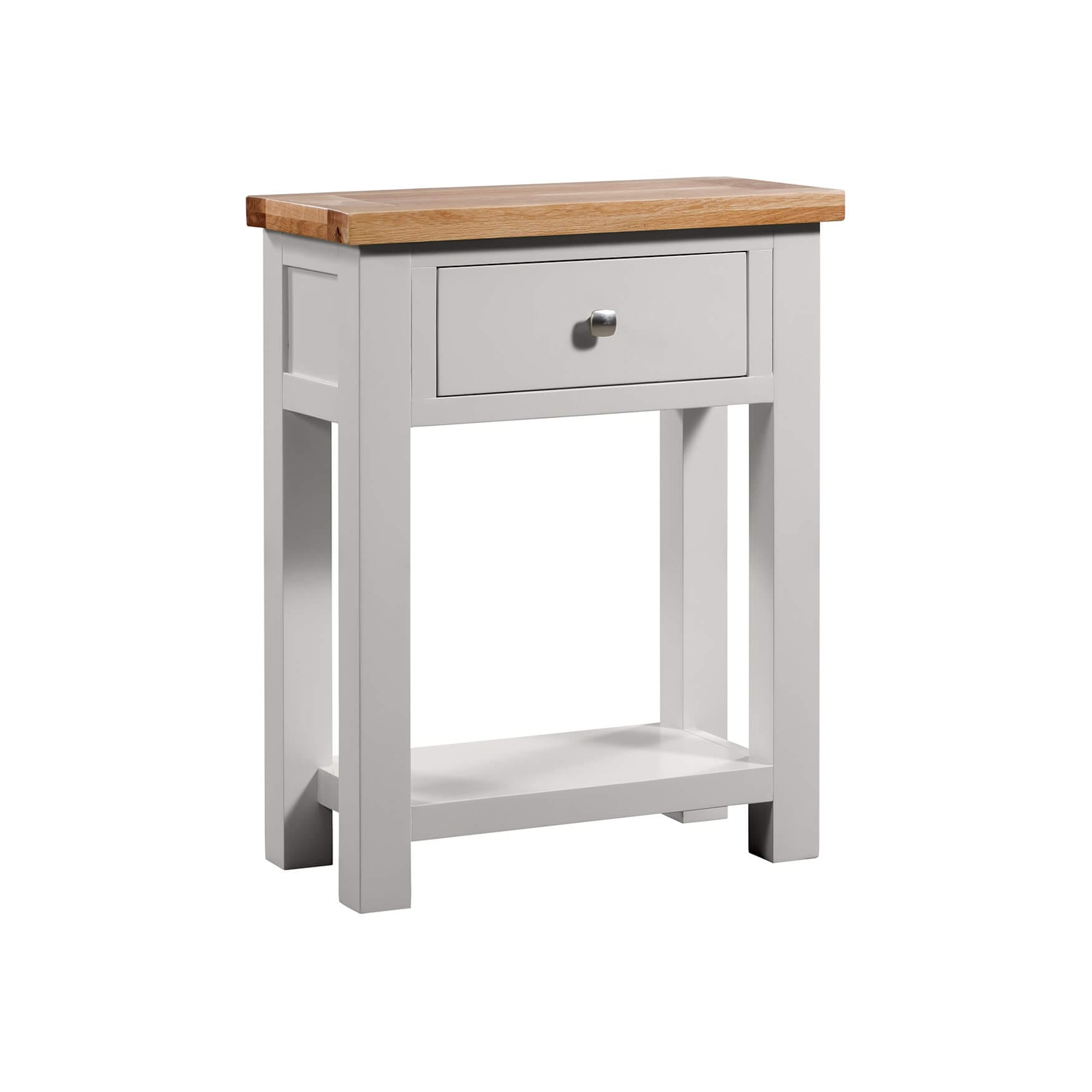 The Dorchester Grey 1 drawer console table adds functionality to any living area or hallway, adding display and storage space in a stylish way. Dorchester Grey is a modern range with clean straight lines, stylish panels and dovetail drawers, with a modern square metal knob.