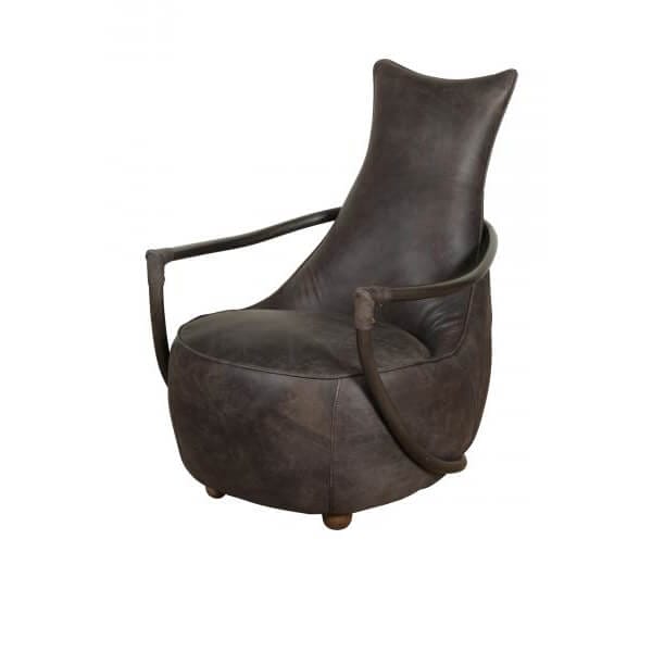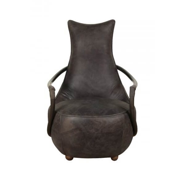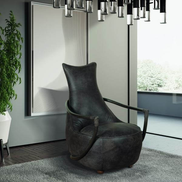 Crafted from the finest materials, the Dallas Retro Relax Chair is made with a gunmetal coloured iron frame with leather wrappings on the arm rests and a grey aniline leather seat. There are plastic caps on the base of the feet to protect the floor.