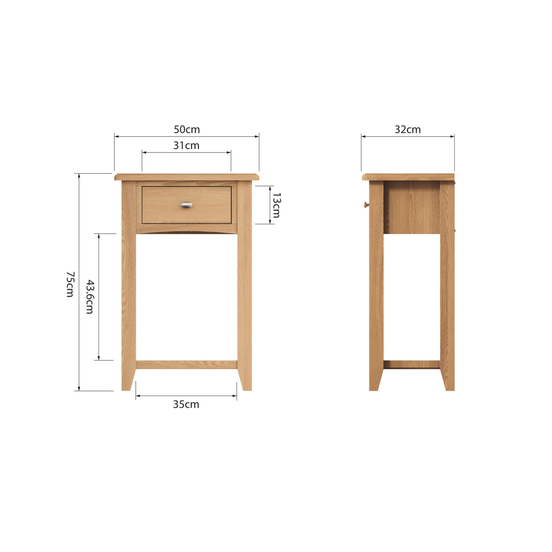 This stylish collection is not only beautiful and features bevel detailing to the tops, tapered legs and all finished in a light oak. The drawers and doors in this range are finished with brushed metal handles.
