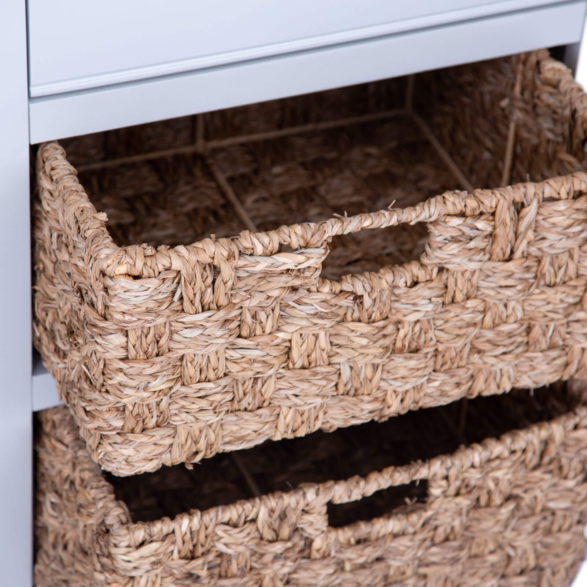With washed oak tops and a beautifully painted white or grey finish this large 2 door sideboard seamlessly blends rustic warmth with contemporary design. The furniture range is finished with chrome accessories and in total adds a classic but stylish feel to any living space.