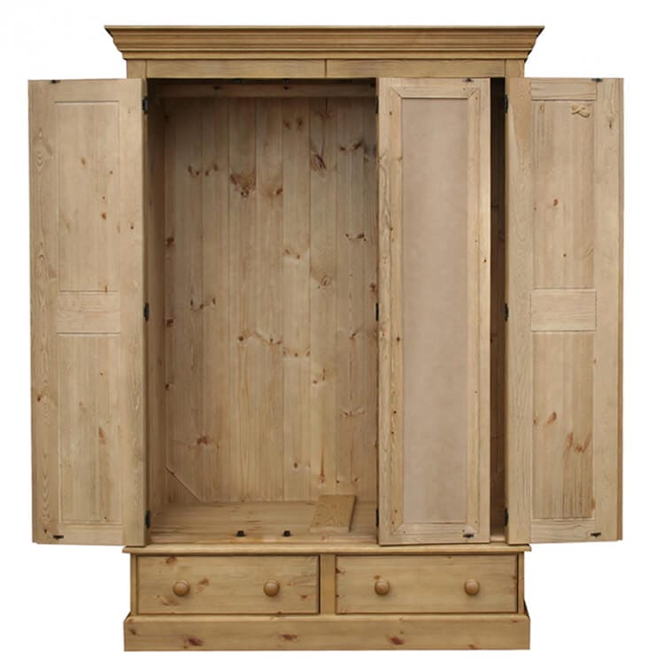 This stylish, Cottage Pine triple wardrobe is perfect for any family, complete with two drawers on the base – expertly crafted in England utilising traditional techniques.