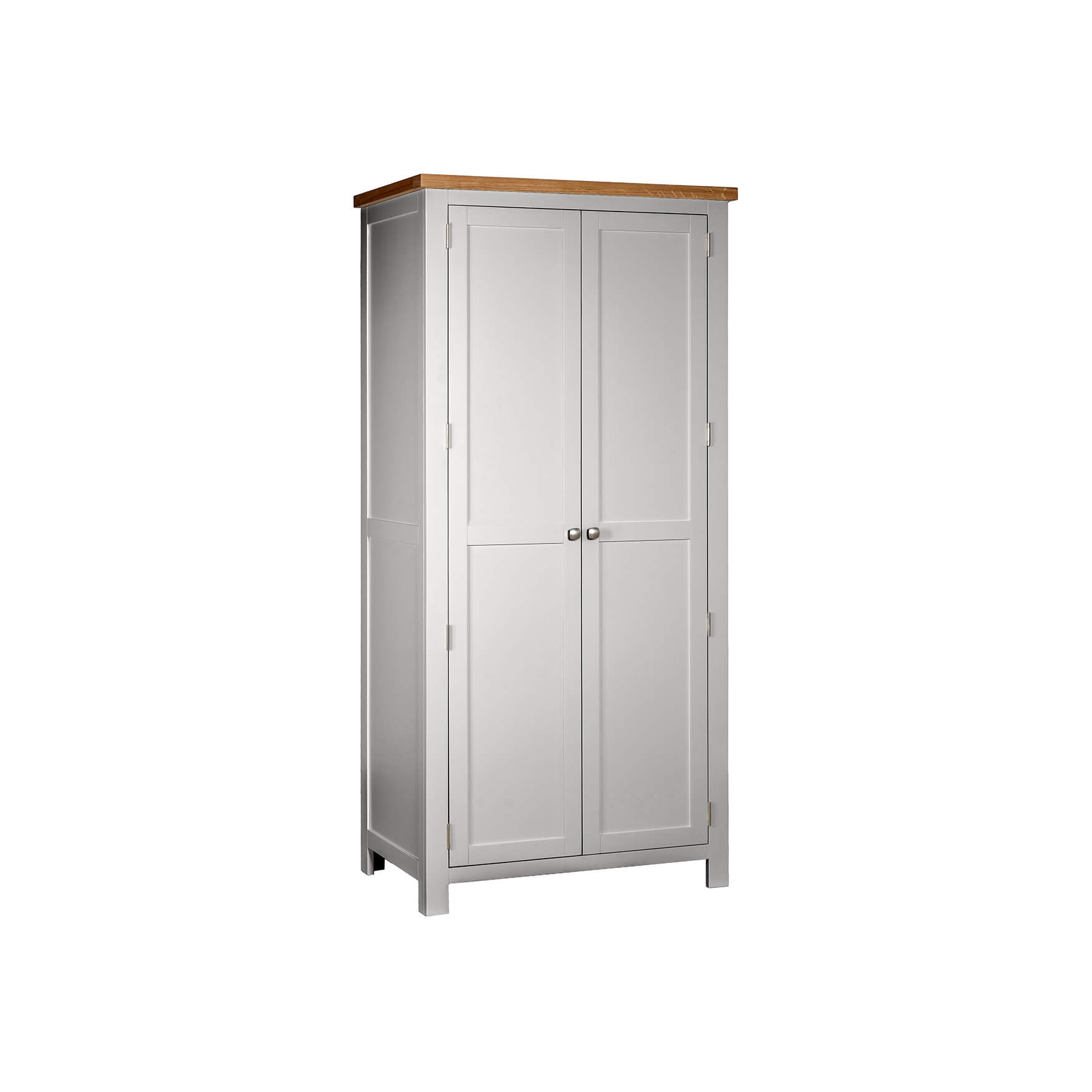 This ever popular double full hang wardrobe, from the Dorchester painted range, is finished in the modern grey colour. It has a light oak top, giving style and functionality to your clothing storage, with a full length rail along the top.