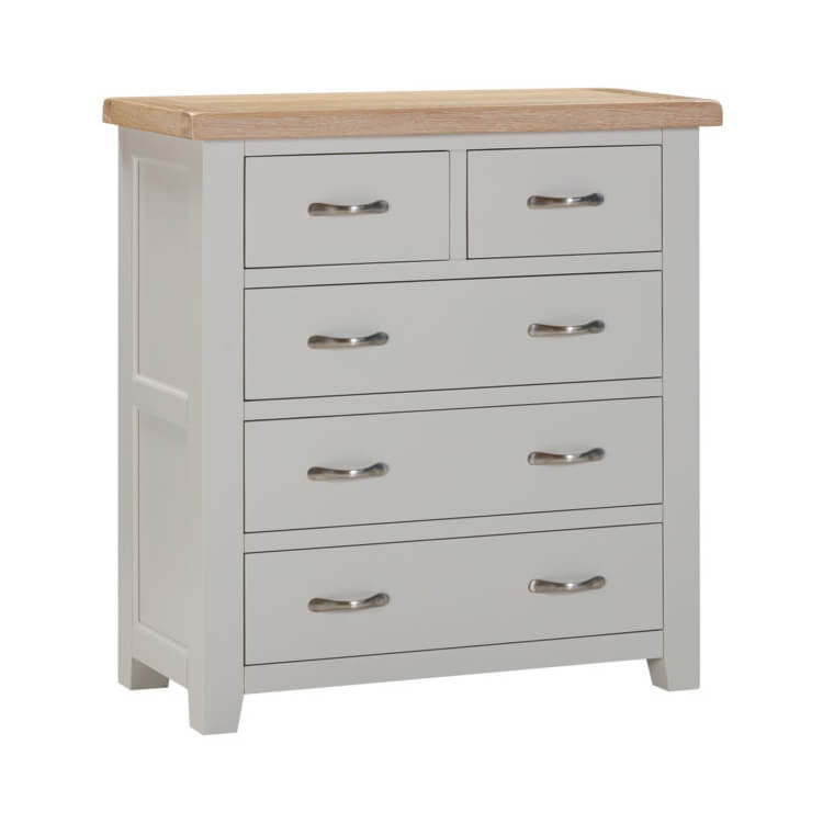 The 2 over 3 chest of drawers is a staple in any bedroom for that extra bit of style. This chest provides versatile and essential storage with its two small drawers positioned above three large drawers.