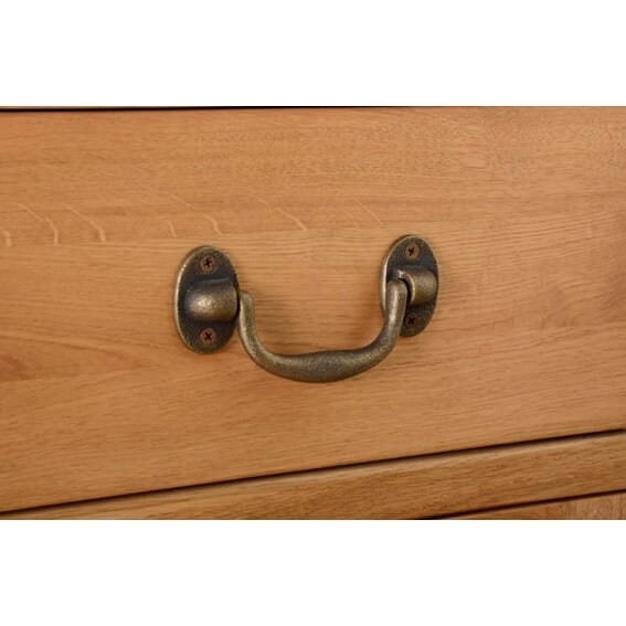 This 3 door, 3 drawer sideboard is from the chunky and sophisticated Somerset Oak range – it has softened corners and is made using traditional techniques including dovetailed drawers, featuring classic brass-effect metal drop handles and finished in a modern, warm-toned wax.