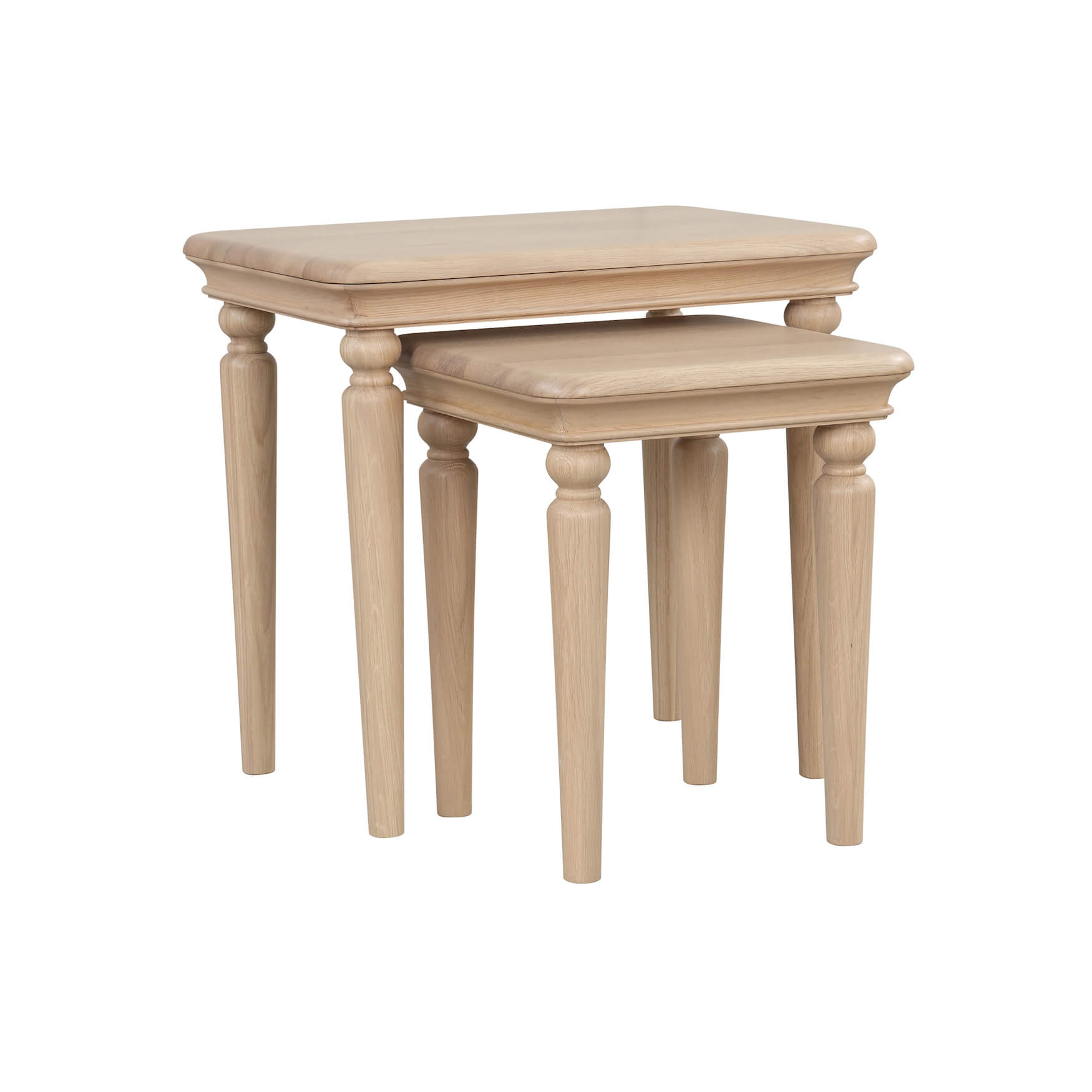 This beautifully crafted nest of 2 tables radiates a sophisticated ambience with gently curved edges, rounded tops, sculptured plinths and a beautiful pale oak finish, makes this Winchester Oak piece a true showstopper.